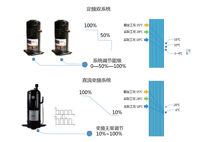 超低出風溫度控制技術,實現(xiàn)盤管6℃出風穩(wěn)定運行,滿足超低濕工藝需求,取代傳統(tǒng)轉輪除濕的方案,成本更低。